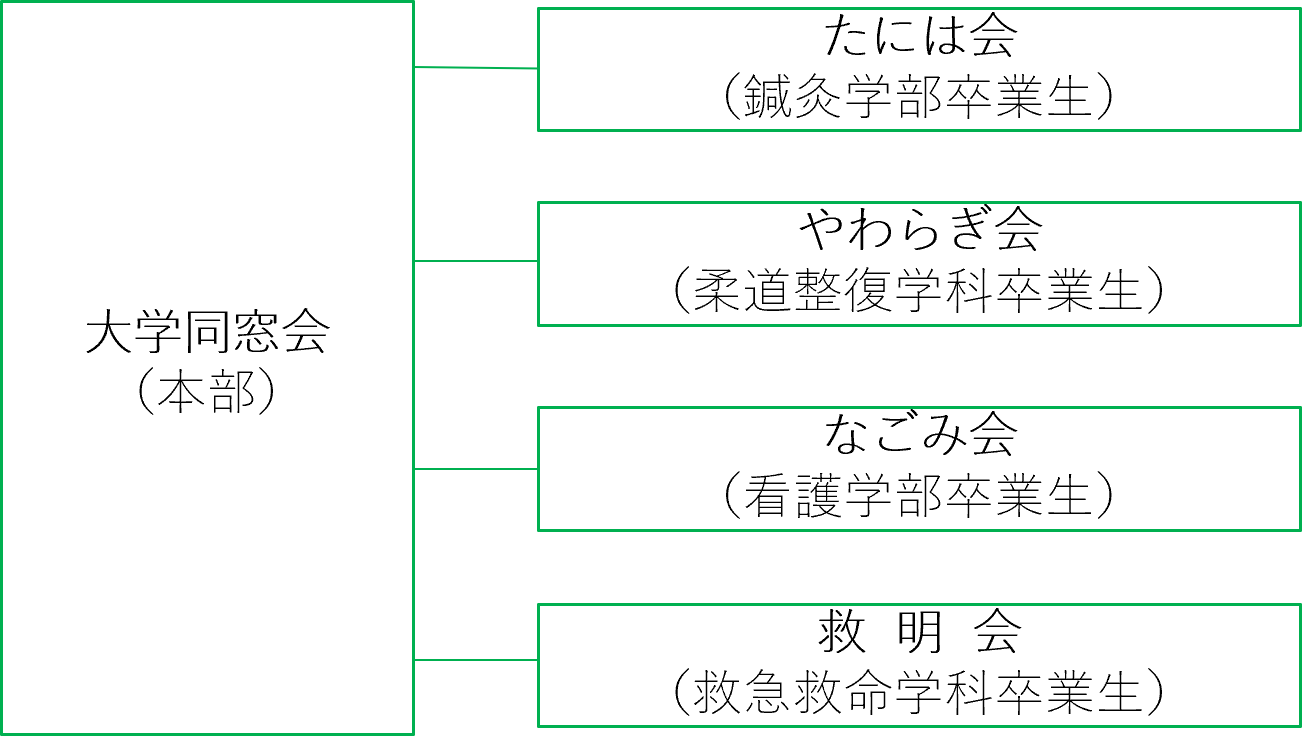 • 第3条 本会は、たには会、やわらぎ会、なごみ会および救明会(以下「学科同窓会」という。)をもって組織する。