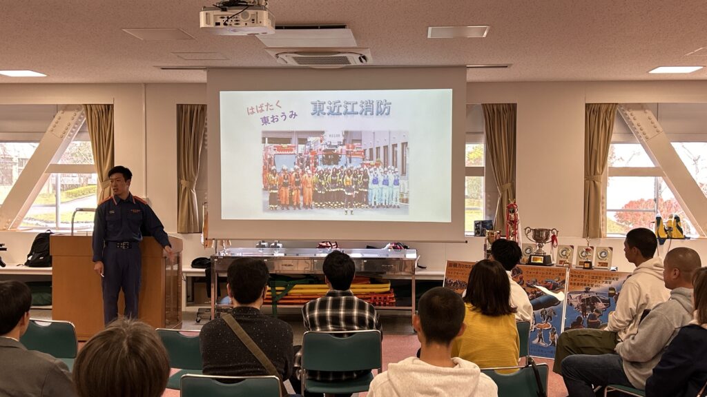 また、オープンキャンパスでは、10月28日(土)に1期生の金川陽亮氏が「明治国際医療大学救急救命学科の歴史と進歩」、11月17日(日)には2期生の田井中力氏が「明治国際医療大学の強みとつながる現場で活きる経験〜東近江消防〜」というテーマで講演を行い、在校生や受験生にとって貴重な学びの機会となりました。