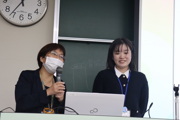 講演テーマは「保健師・助産師の役割と責任について」とし、2025年3月卒業生16期生の保健師 村尾さん、助産師 江戸さんをお招きし、保健師・助産師としての具体的な業務内容や現場でのやりがい、将来の展望についてお話しいただきました。また、保健師・助産師を志したきっかけや、在学中に大切にしてきた学修姿勢、実習や国家試験勉強への取り組み方についても、実体験を交えながらご紹介いただきました。さらに、専門職として求められる責任感や日々の学修の積み重ねの重要性など、今後の学生生活や将来の進路選択に役立つ具体的なアドバイスをいただき、参加した学生は終始熱心に耳を傾け、講演後には多くの質問が寄せられるなど、保健師・助産師という職業への理解を深める貴重な機会となりました。